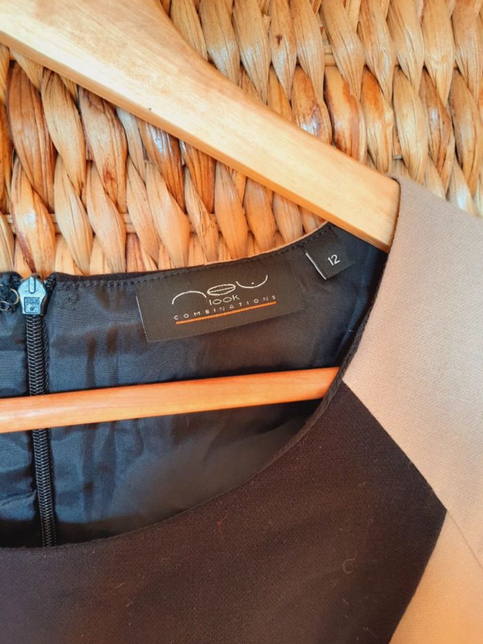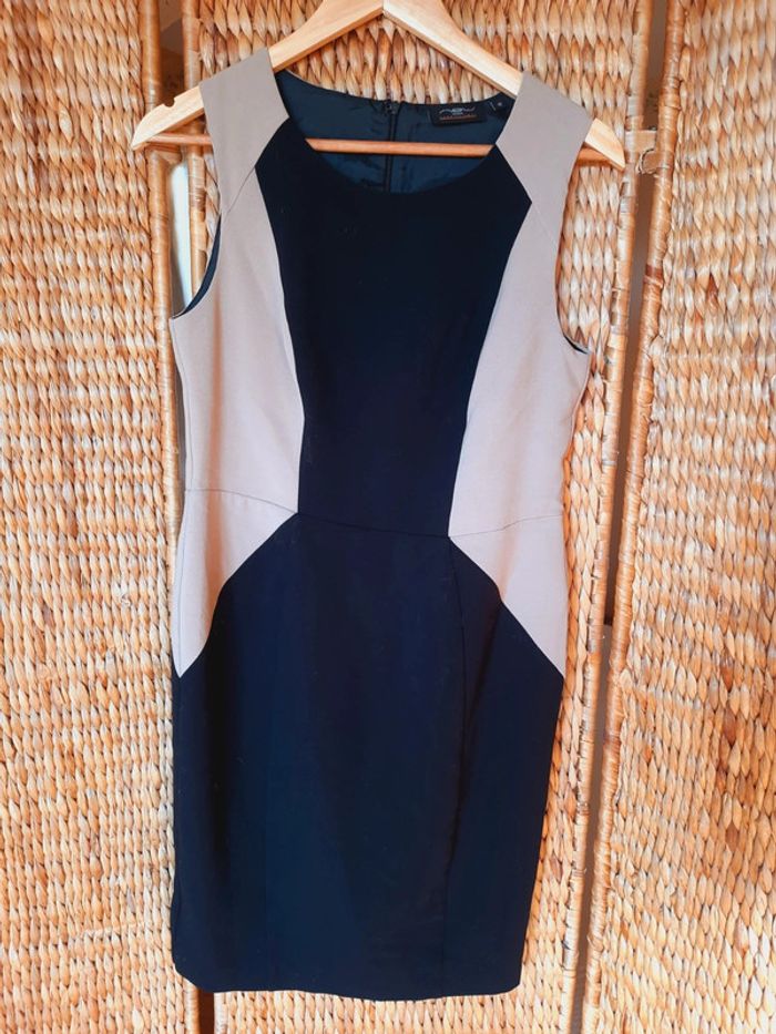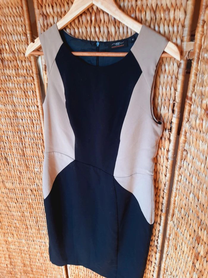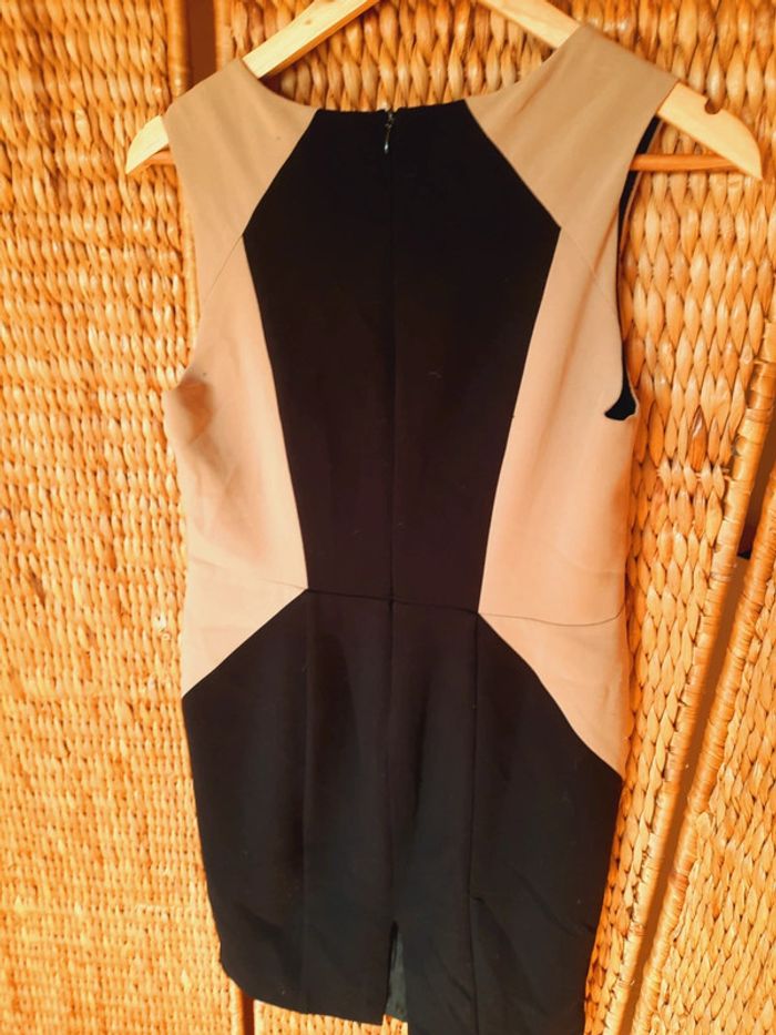 Robe droite, chic, sans manches, noire et beige sable, fermeture éclair dans le dos, taille 40, très bon état