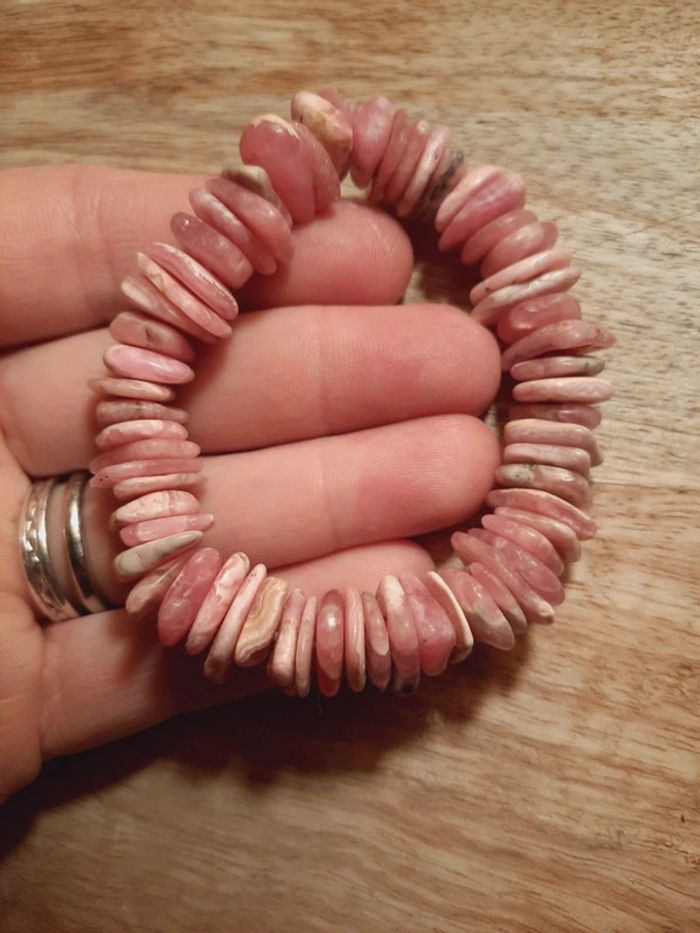 Bracelet en rhodochrosite, assez lourd, belles perles