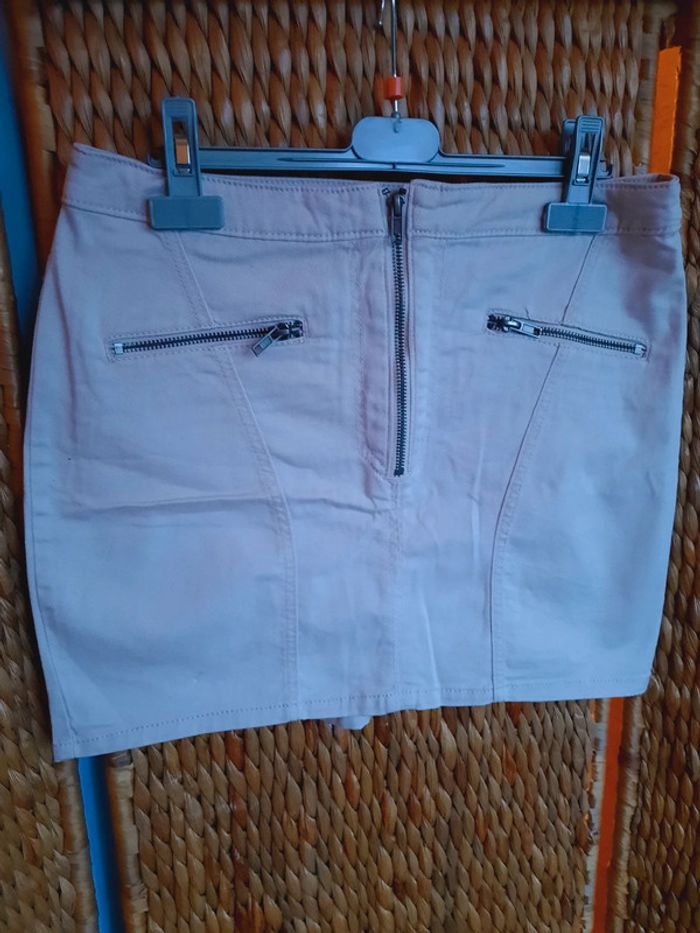 Mini jupe beige Divided H&M, fermeture éclair à l'avant, très bon état