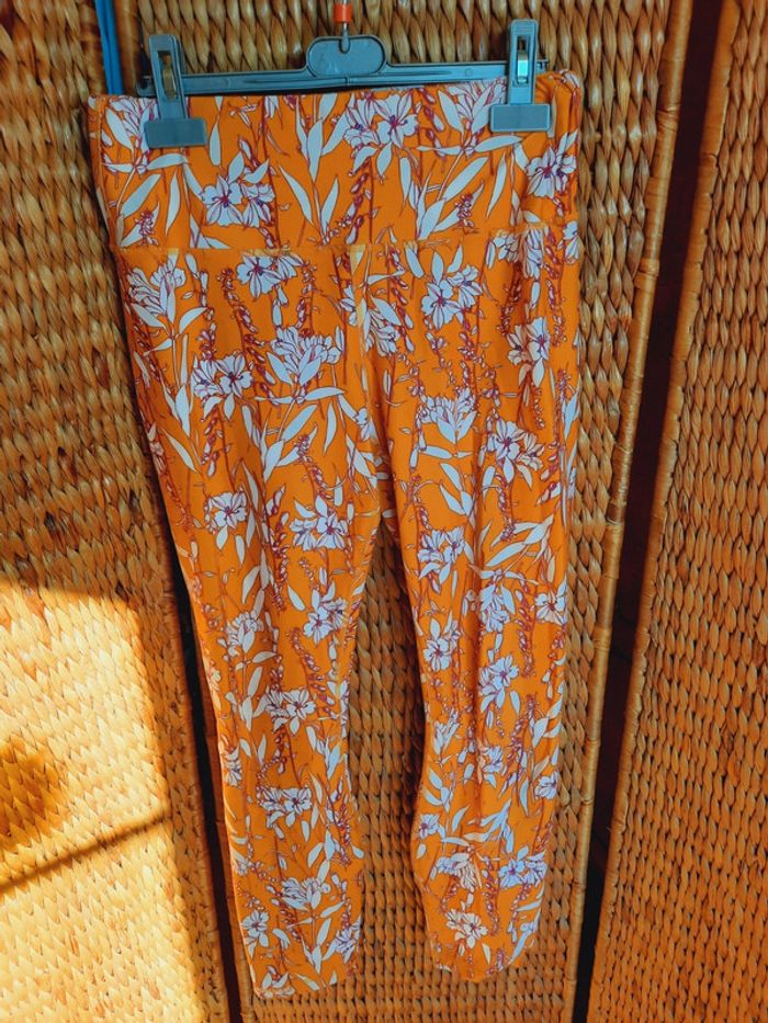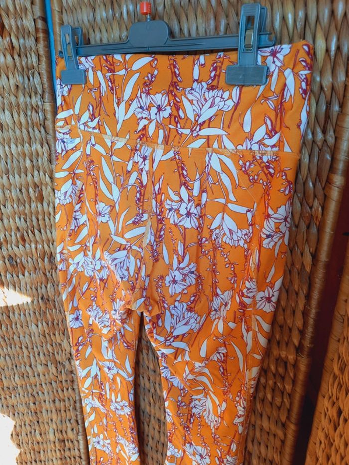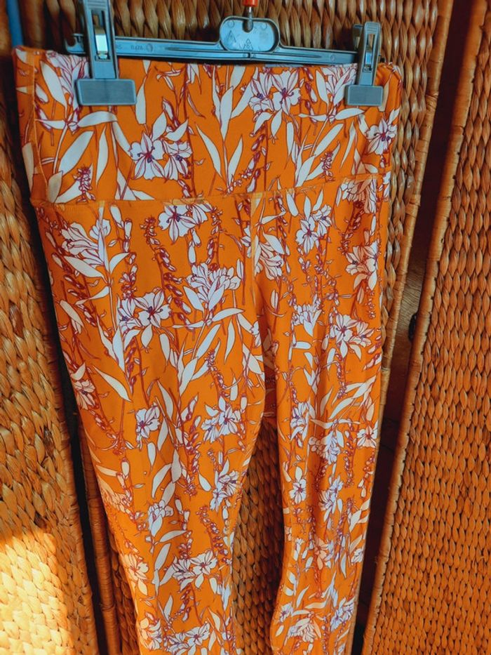 Legging jaune orangé à fleurs, style fabletics, taille L, très bon état