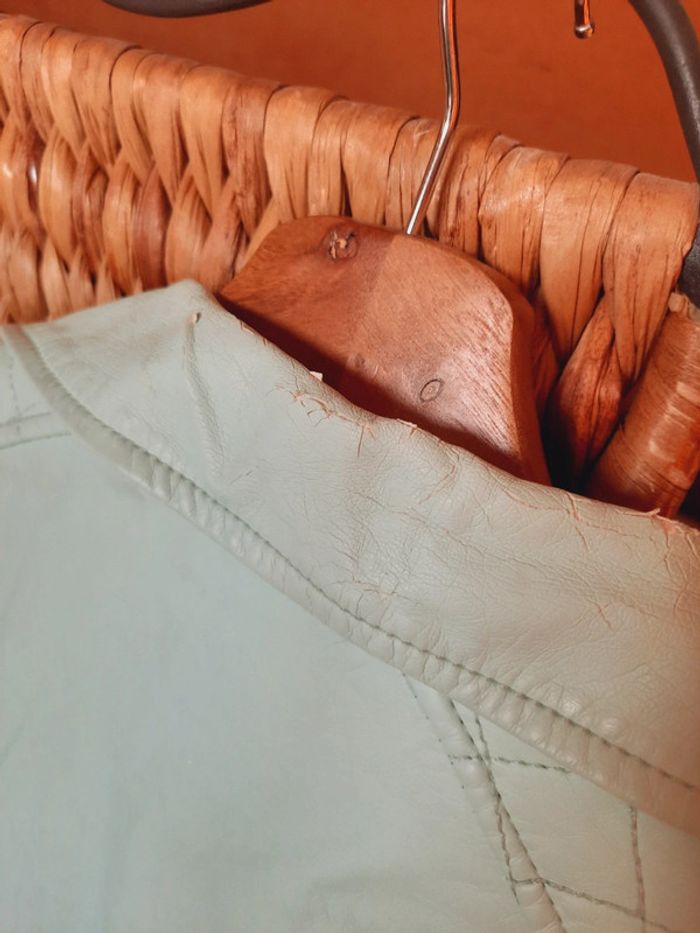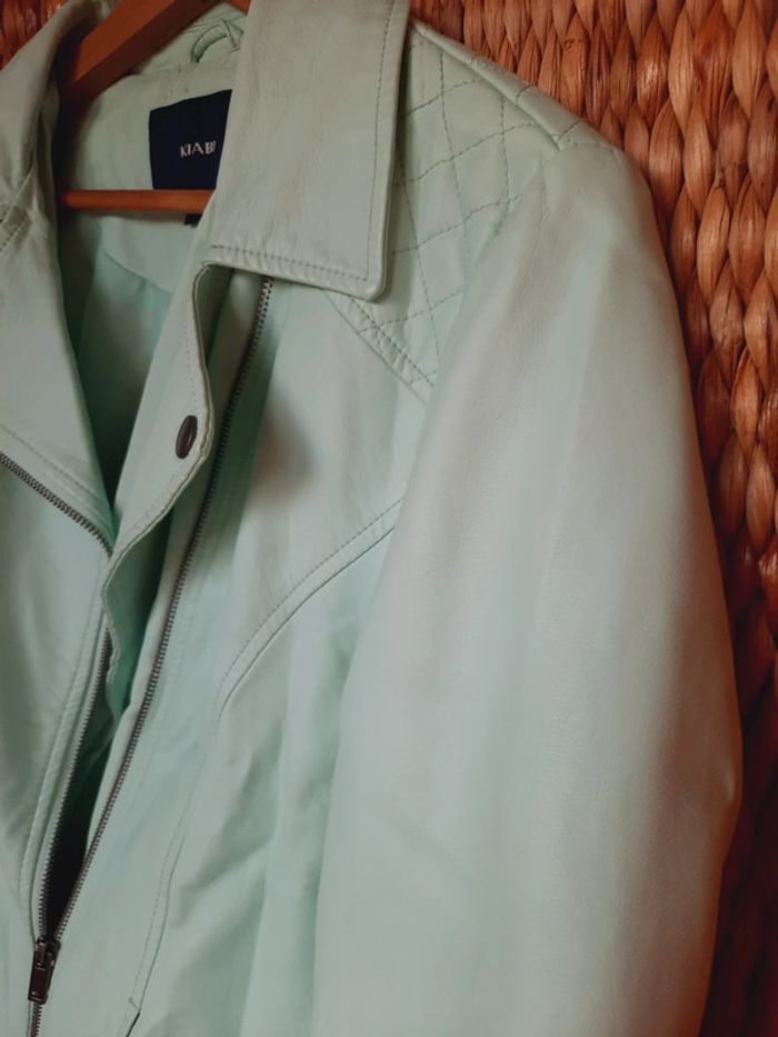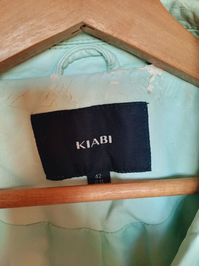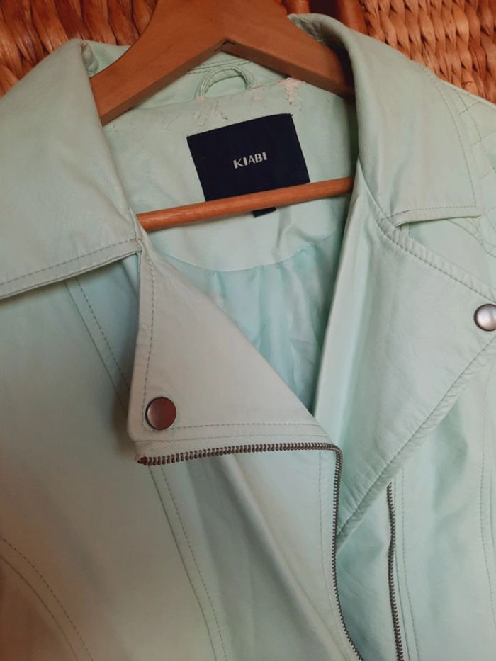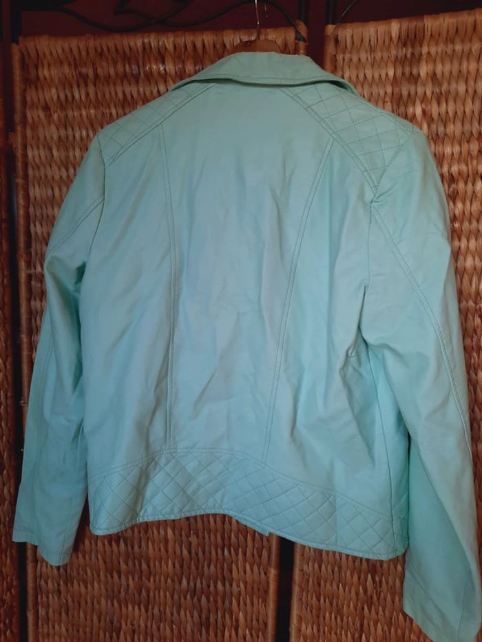 Perfecto Kiabi couleur menthe, turquoise, taille 42, extérieur très bon état mais le col est usé, tout le reste est nickel