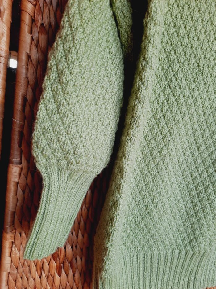 Pull long tricoté main vers anis L - photo numéro 4