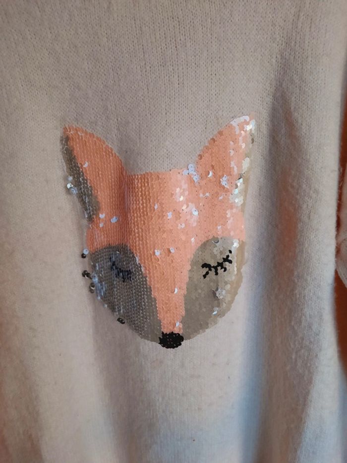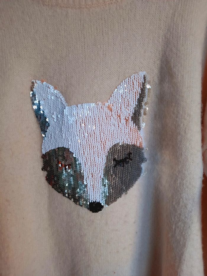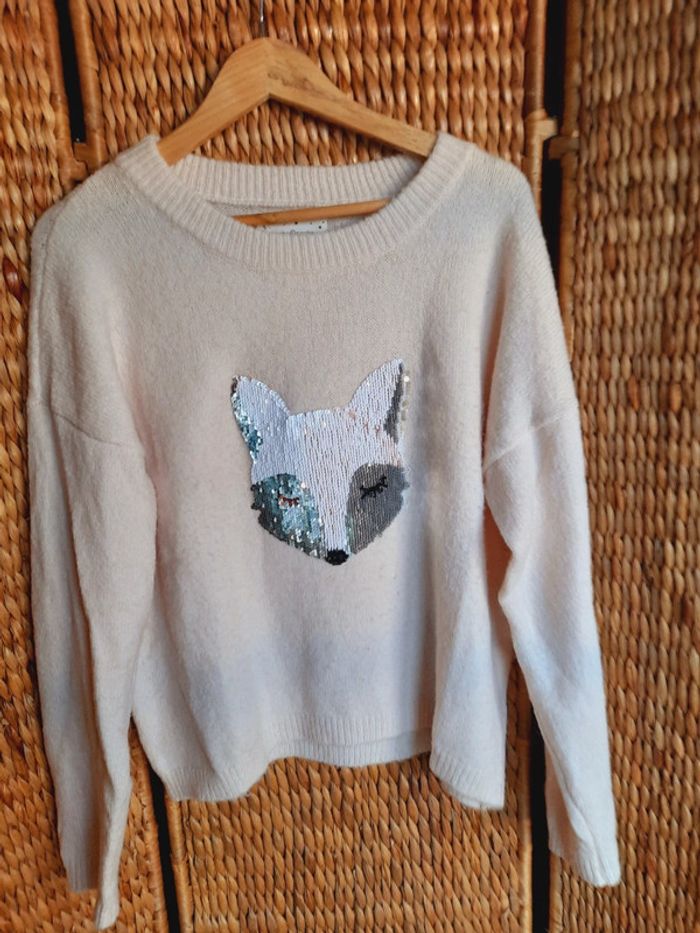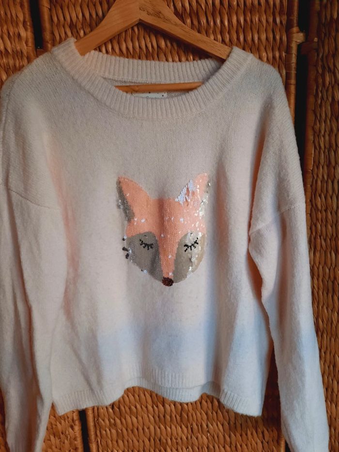 Pull d'hiver Cache-cache tout doux, renard en sequins, taille L, très bon état