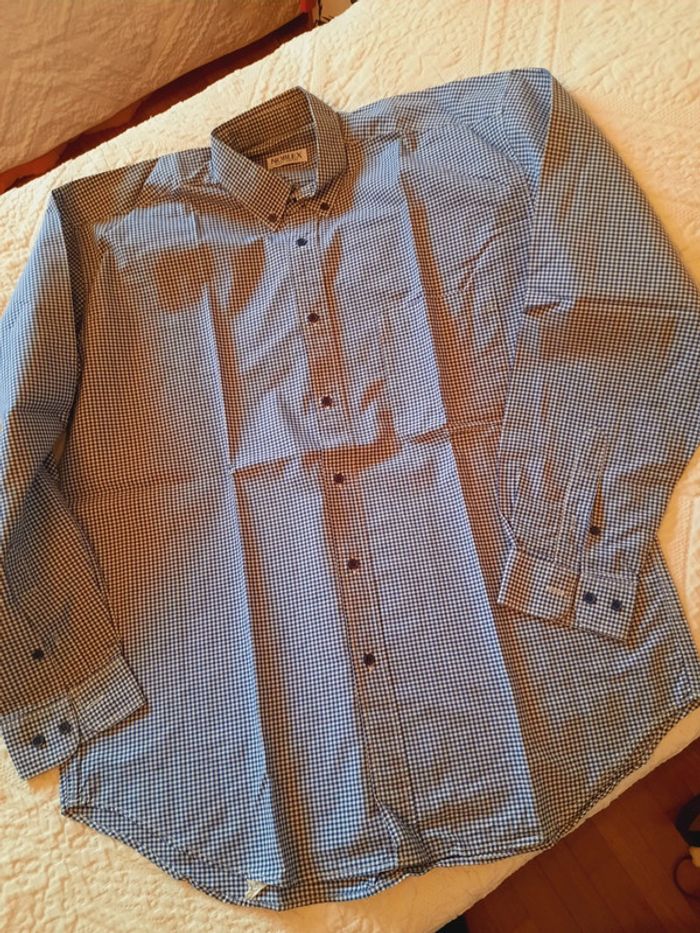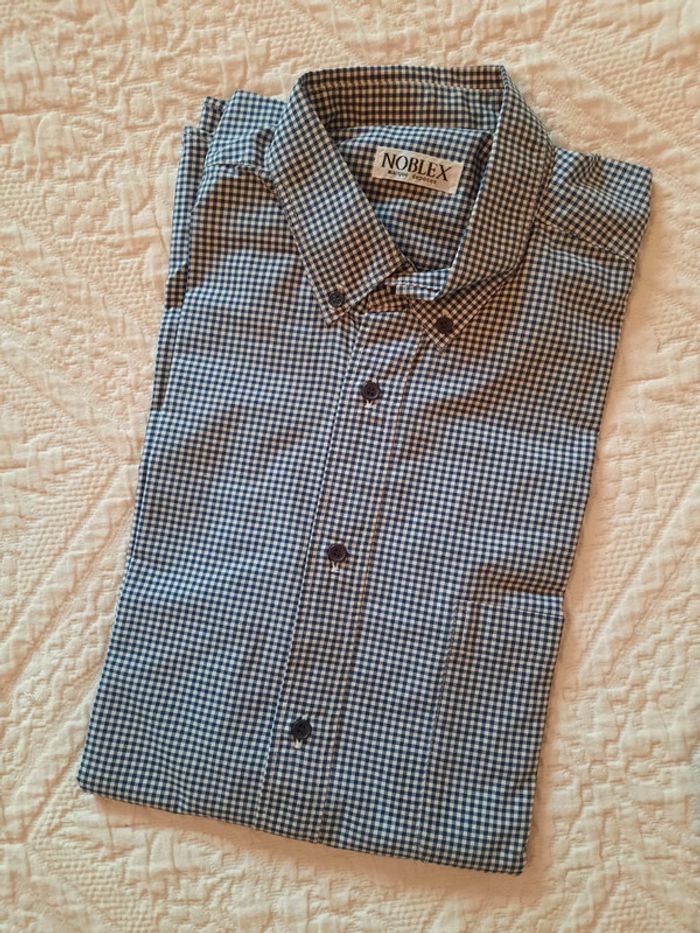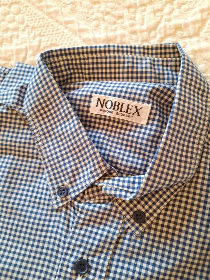 Chemise Noblex petits carreaux blancs et bleus marine, bon état général, taille XL
