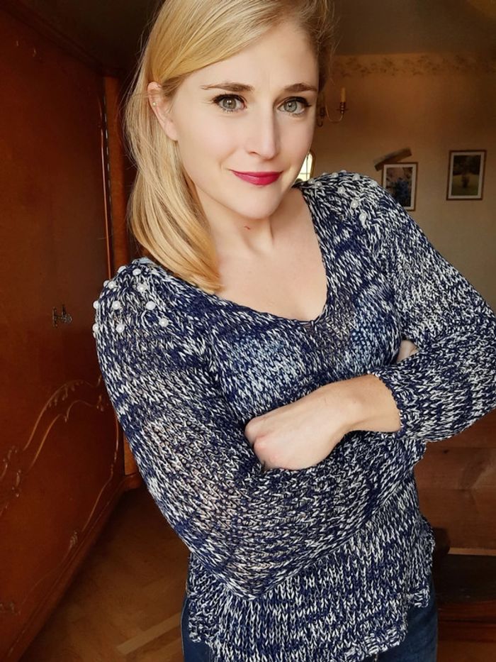 Blouse Bershka maille, petites perles nacrées sur les épaules, taille M, très bon état