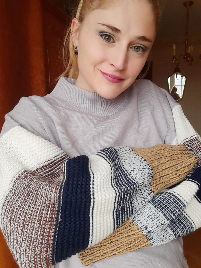 Sweat gris manches mailles L/XL - photo numéro 2