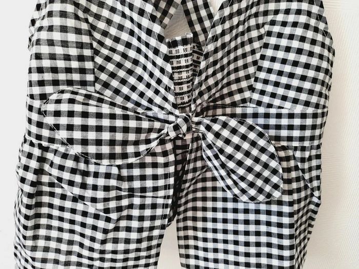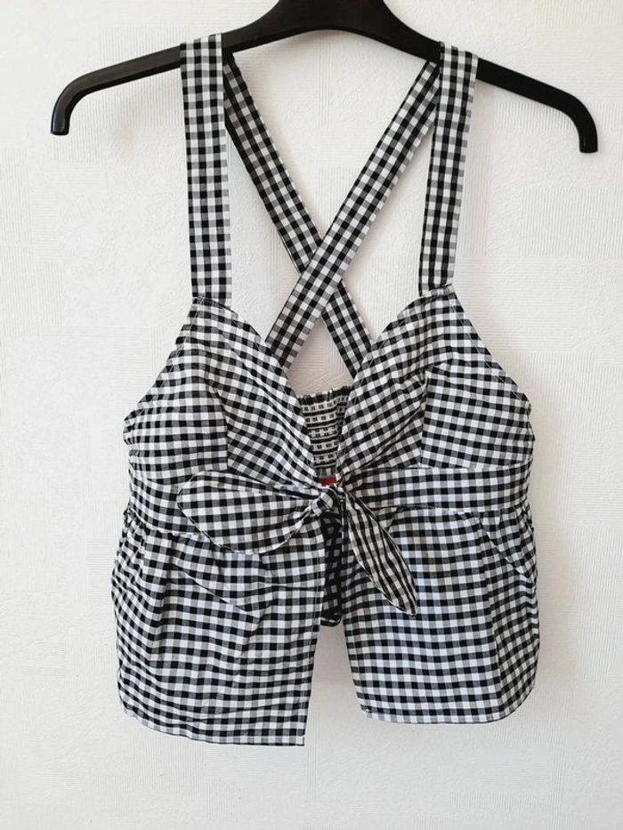 Caraco de nuit Etam à carreaux, noirs et blancs, noué devant, bretelles croisées dans le dos, élastique dans le dos, taille L, neuf (trop grand pour moi)