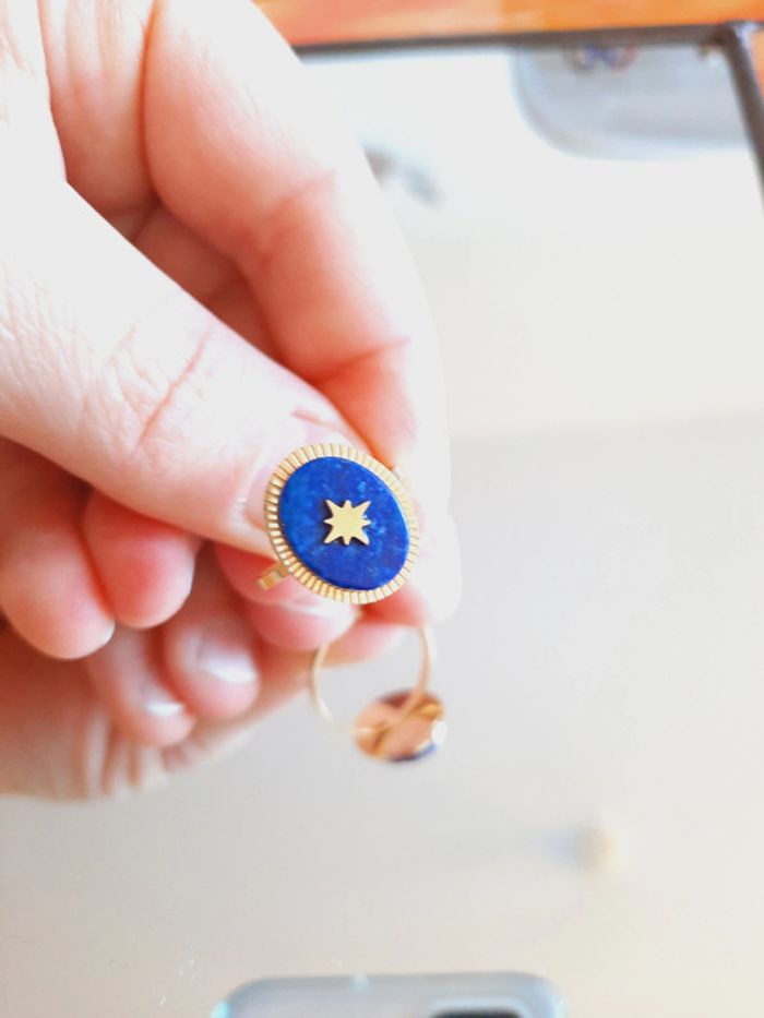 Bague doré Lapis Lazuli réglable - photo numéro 3