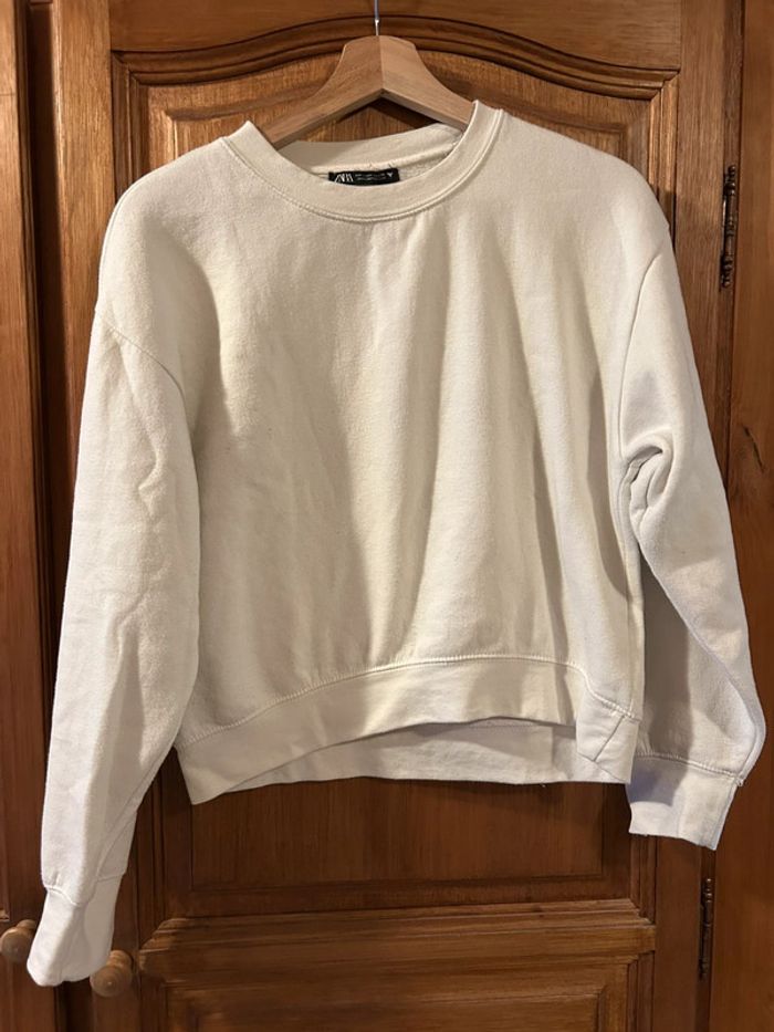 Pull blanc Zara Taille S Porté très souvent, on le voit au tissu #todesco57350_taillexs_s