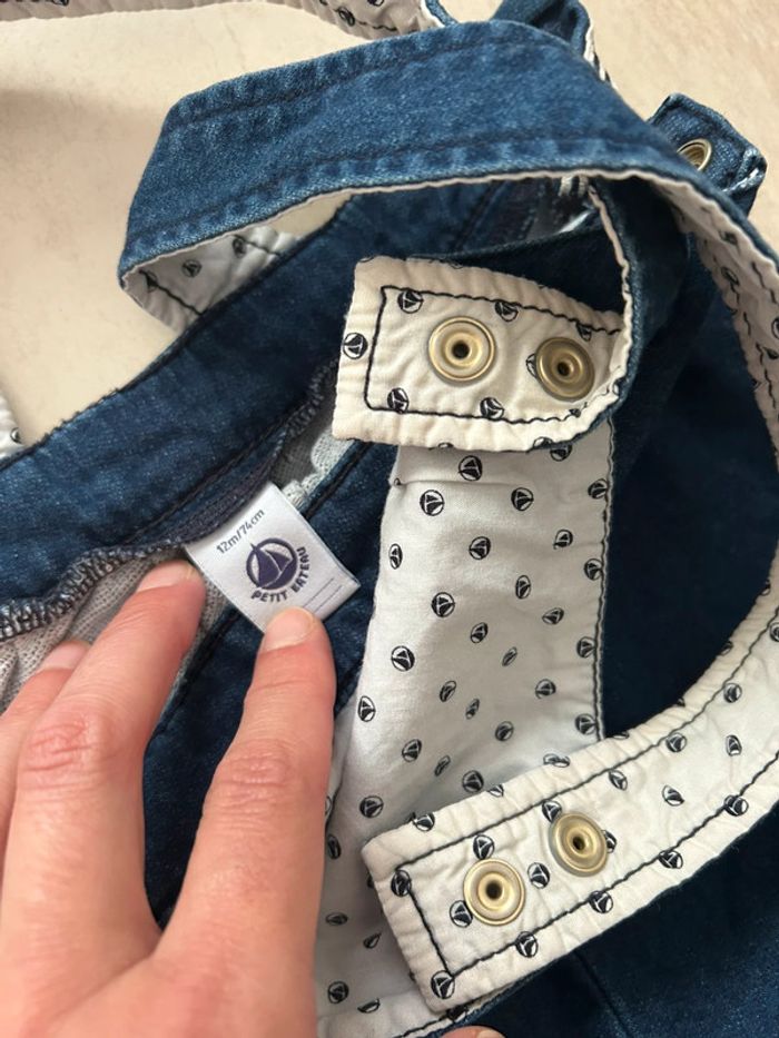 Combi short petit bateau en jeans taille 12 mois - photo numéro 1