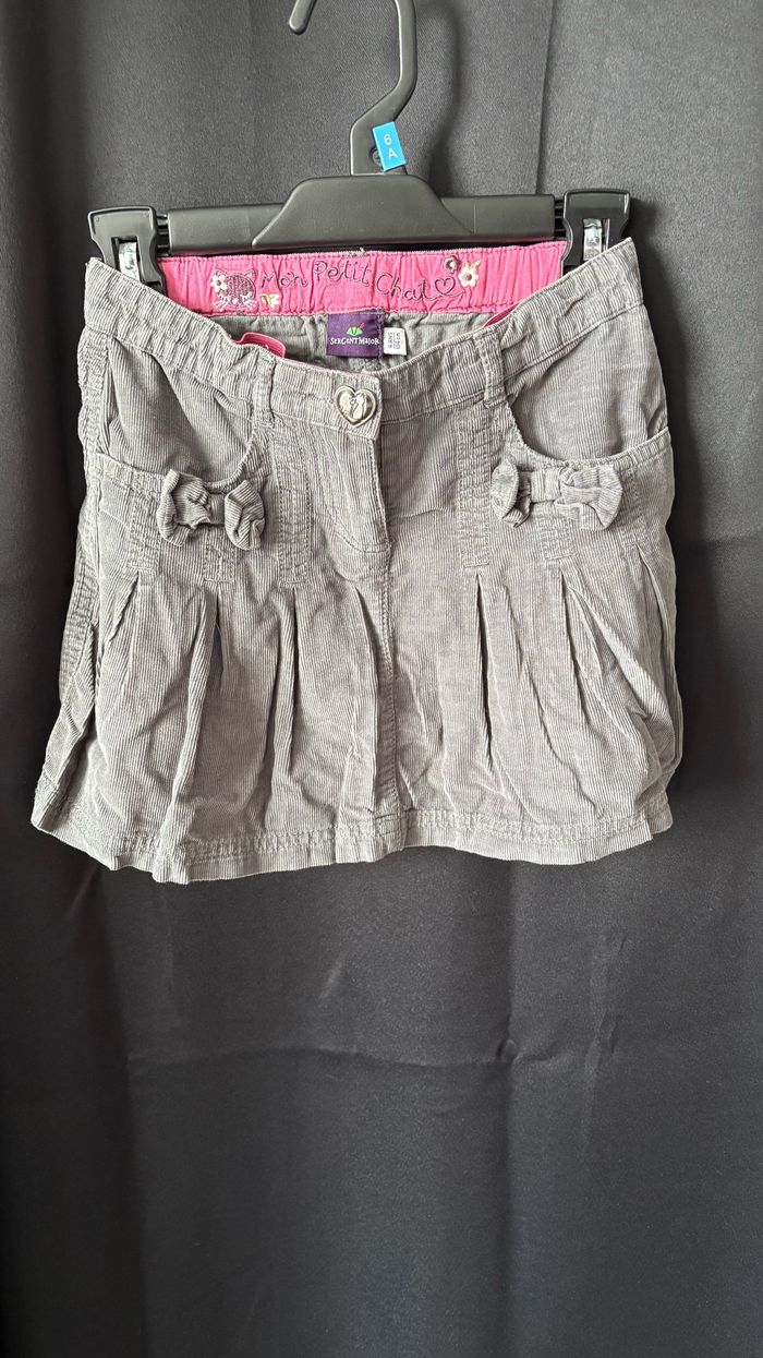 Couleur uni gris, fermeture bouton pression, fermeture éclair et taille ajustable avec élastique