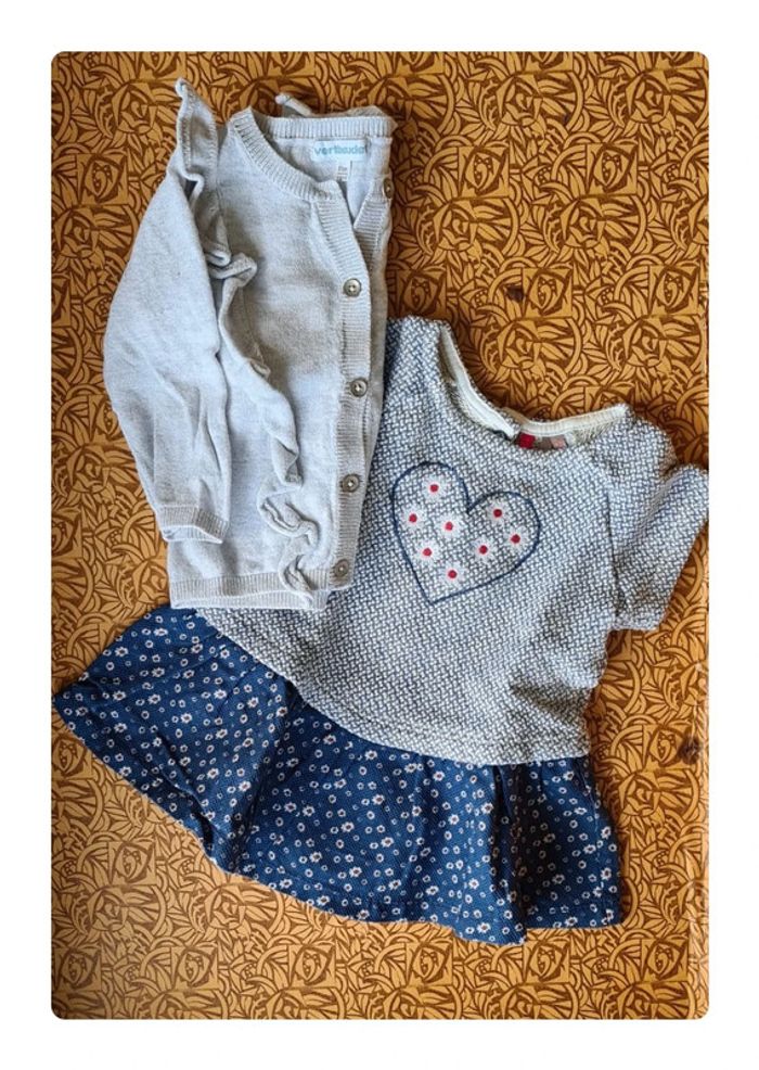 Taille 6mois 67cm Robe ORCHESTRA BABY effet trompe l'œil bi-matière, une partie pull manches courtes avec fils argentés, fleurs et cœur brodés Une partie jupe avec motif fleurs Coloris argenté, bleu, rouge Ouverture par boutons pression au dos Gilet déjà vendu D'autres articles 6mois: 🔎 #simdeline6mois #orchestra #orchestrafille #robe #misaison