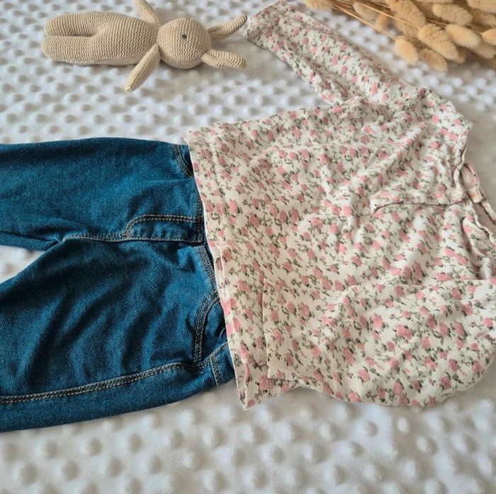 Petit ensemble 12 mois Haut fleurie sans marque Leggings pat et ripaton Pas de tâches ni de trous Plus de 12 mois #debrah2512mois #ensemble12mois #12moisfille