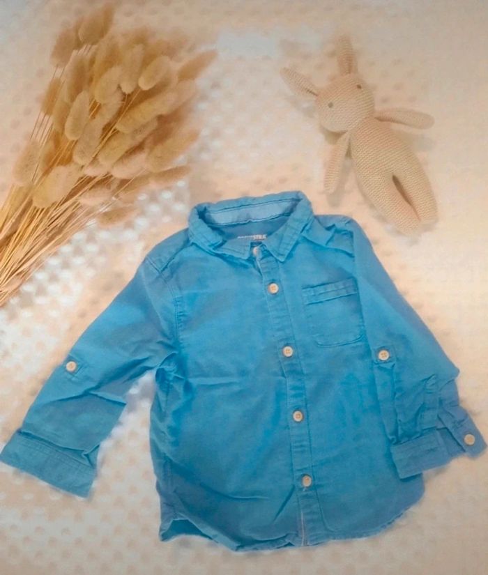 Chemise bleu Bouton pour raccourcir les manches Plus de 12 mois #debrah2512mois #12mois #12moisgarçon #chemise12mois