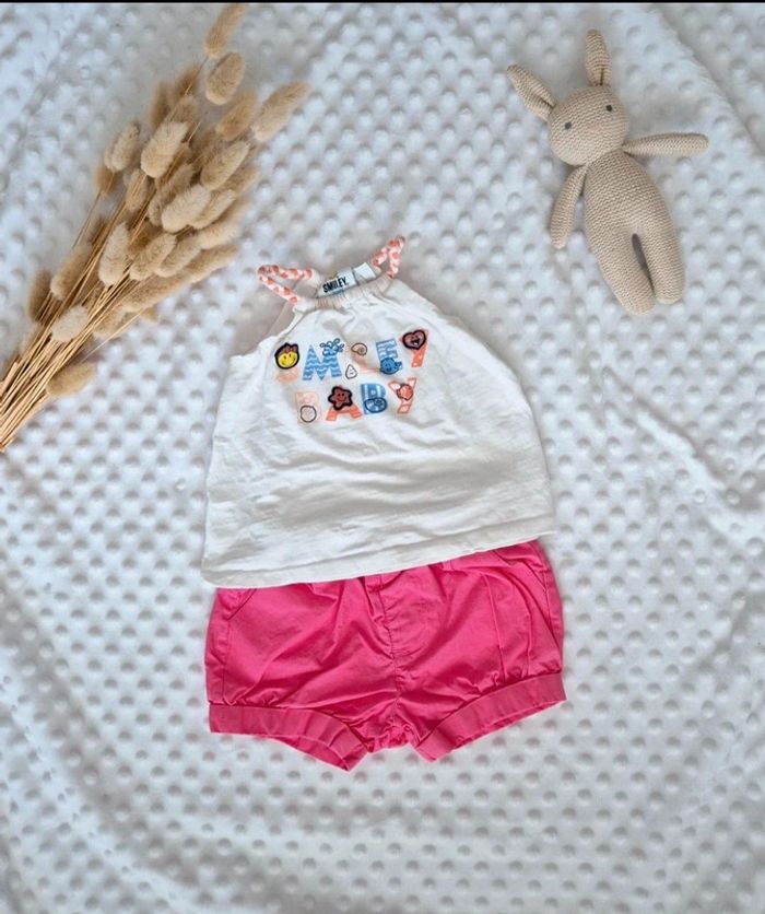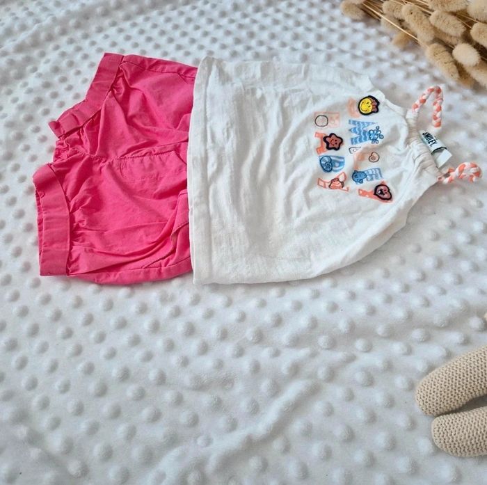 Petit ensemble 6-9 mois Short smile taille 68 ( 6-9 mois) Débardeur smiley baby 9 mois Plus de 6 mois #debrah256mois #ensemble6mois #6moisfille #6mois
