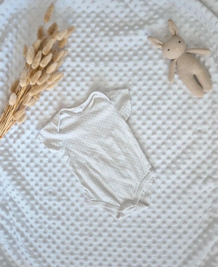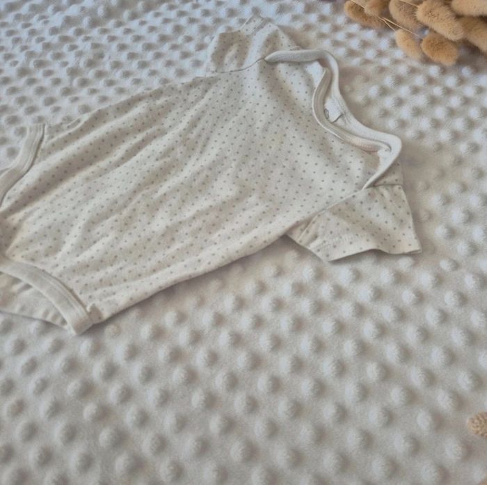 Petit bodie blanc à pois gris . 68 Pas de tâches ni de trous Plus de 6 mois #debrah256mois #bodies #bodies3mois #3moismixte
