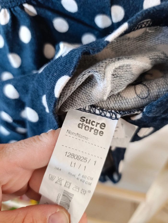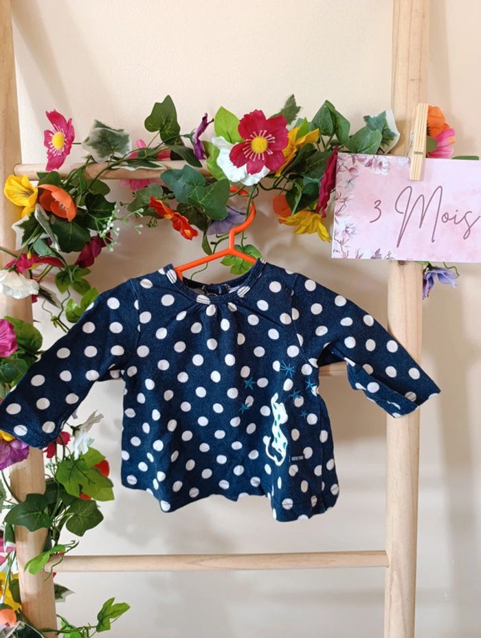 ✨ Dressing trier dans " à propos" 📩 Possible d'activer Chronopost pour ce qui le souhaitent, ne pas hésitez a demander pour que je l'active 🌺 Marque : Sucre d'orge 🌺 Taille : 3 mois 🌺 T-shirt manche longue bleu marine et blanc #deborahcog_3moisfille