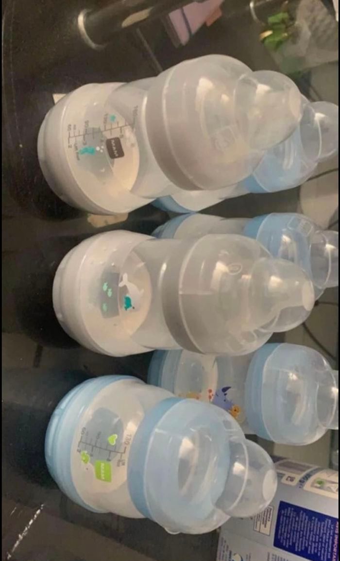 vend ce lot de 6 Biberons Mam anti coliques , 5de 160Ml et 1 e 130Ml , vendus avec 2 tétines débits 0 les autres biberons n’en ont pas , elles n’ont pas été utilisé car mon fils a eu un lait plus épais donc une tétine plus adapté . De plus les biberons n’ont pas été utilisé longtemps car mon fils a augmenté ses doses 😊voilà n’hésitez pas