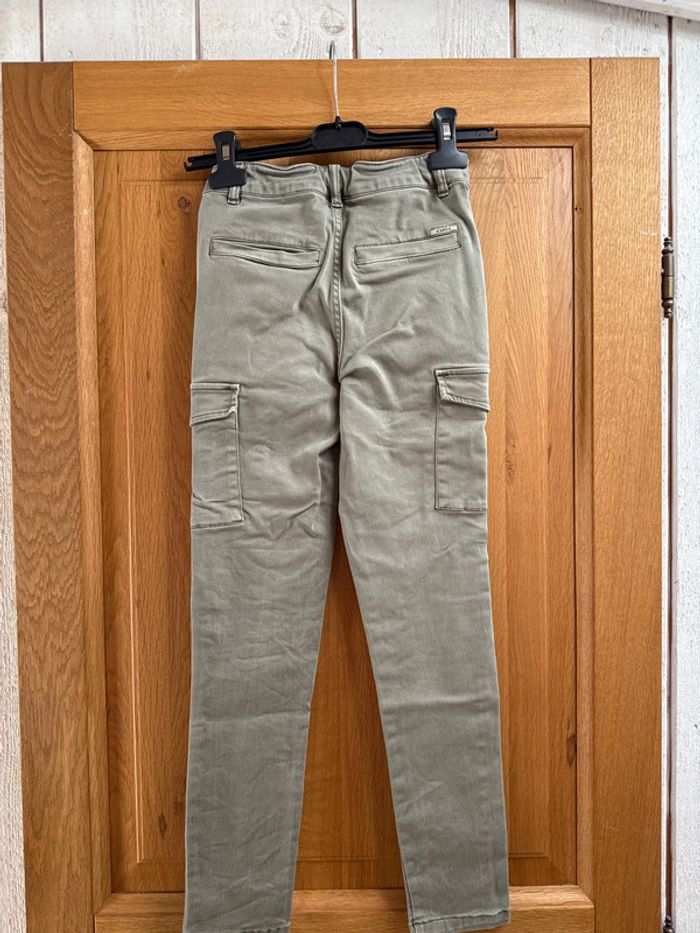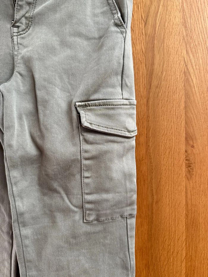 Sur les photos le pantalon semble gris mais en réalité il est kaki. Plusieurs poches. Il est en très bon état. 10 ans Taille ajustable