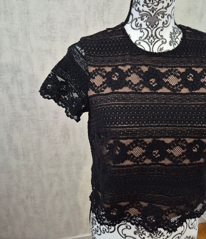 Top court noir en dentelle H&M taille 36 S - photo numéro 2