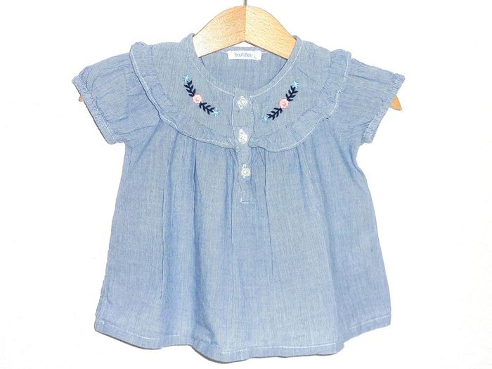 Pour voir mes annonces dans cette taille, tapez: #karinelillefille6mois Etat neuf pour cette blouse boutchou ornée d'une encolure brodée. Imprimé rayé bleu