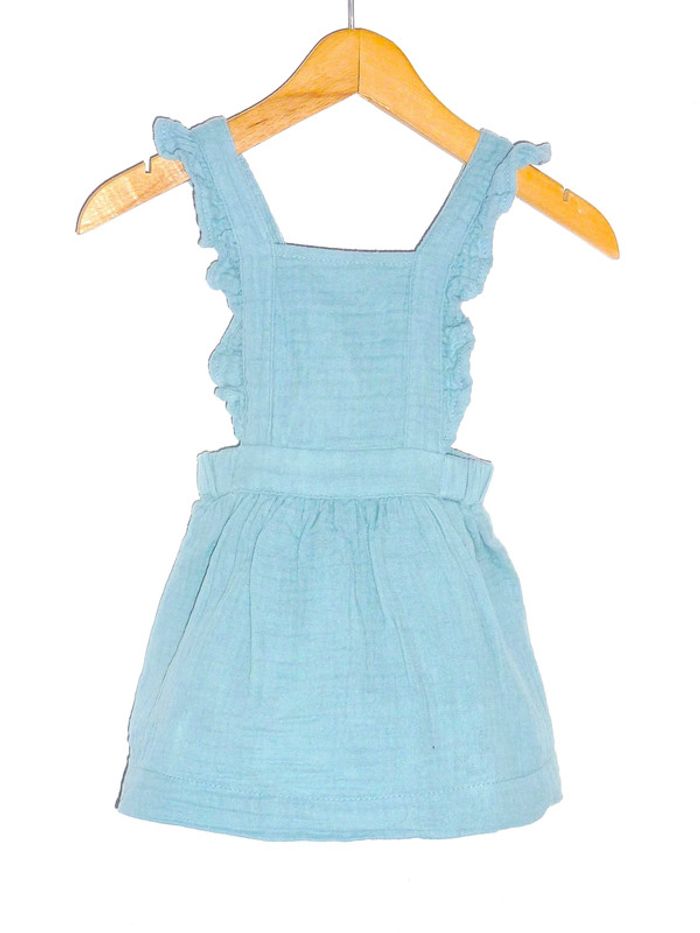 Pour voir mes habits dans cette taille, tapez #karinelillefille6mois Robe en gaze de coton en excellent état, de marque VERT BAUDET, bretelles volantées, couleur bleue nuage.