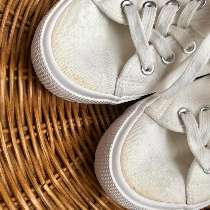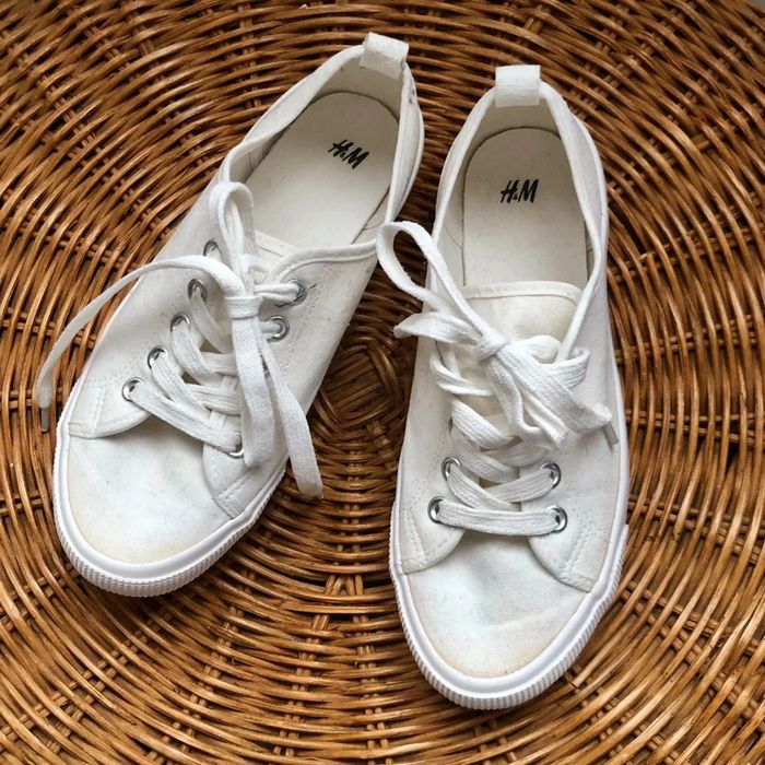 baskets toile blanche H&M lacets très bon état car portées 2 fois défaut : toile un peu jaunie devant (voir photo) taille 36 / US :4 #miomaomiomaofille36 #baskets36