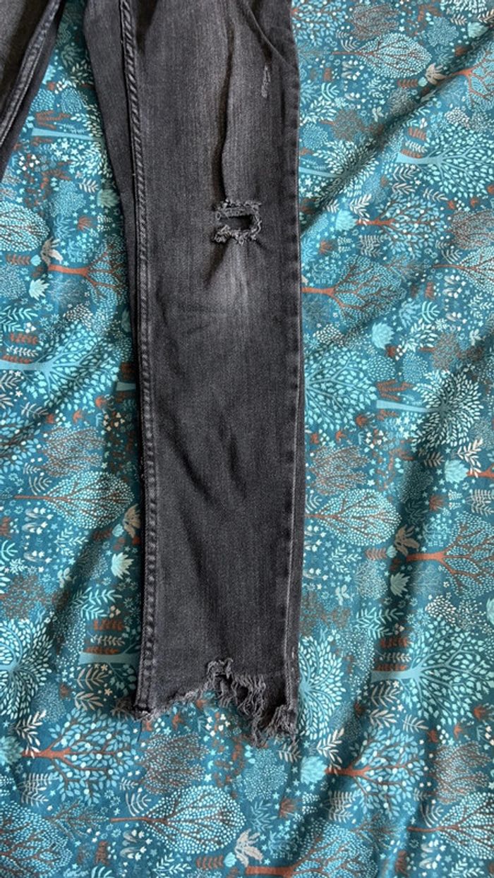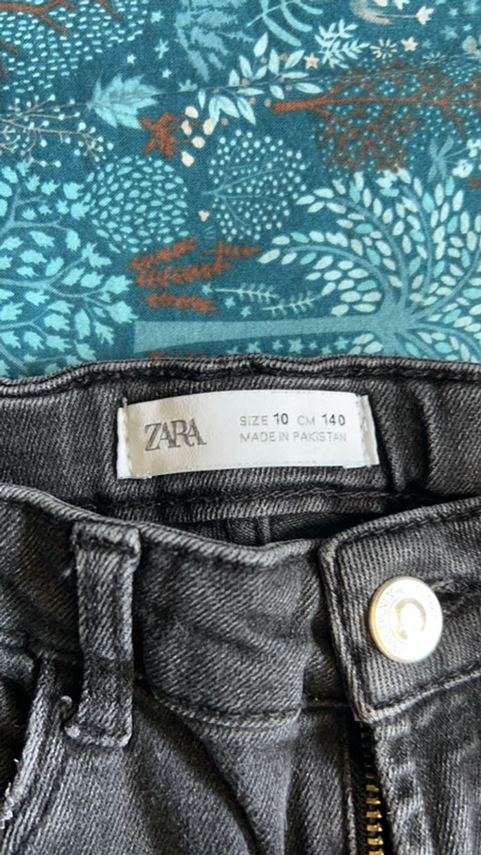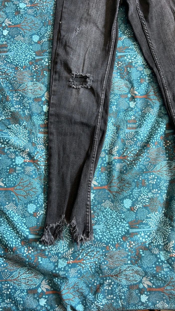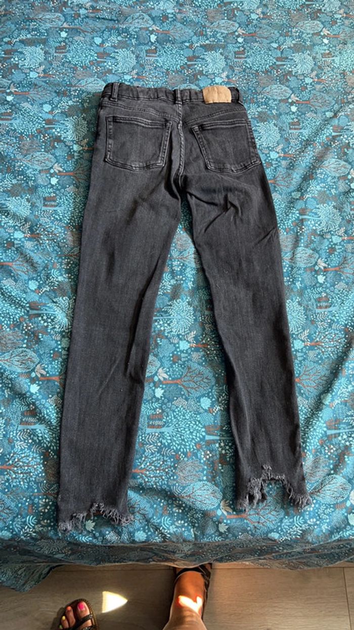 Jeans fille slim avec trous aux genoux. En très bon état. Juste 2 minuscules accrocs en bas de la jambe droite derrière voir photo. Taille 10 ans 140cm