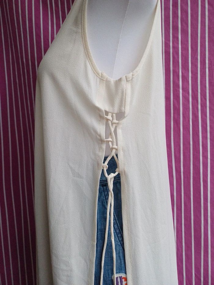 Asymétrique plus courtes devant fentes de chaque côté avec un cordon pour ajuster Ça peut porté avec un leguins Largeurs de poitrine 100cm Longueurs devant 84cm Longueurs derrière 106cm