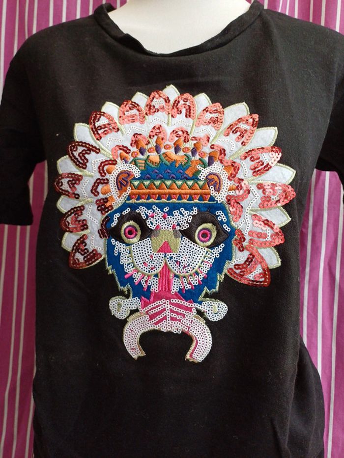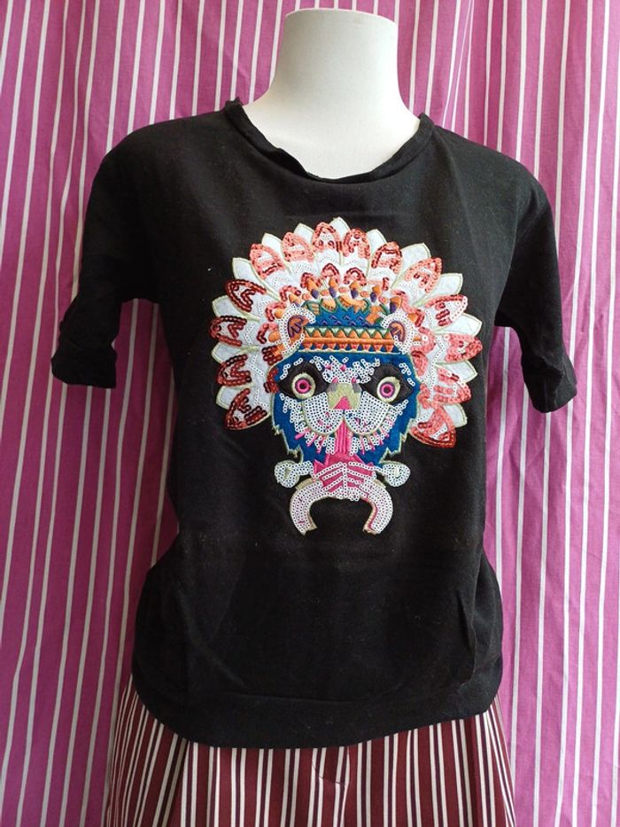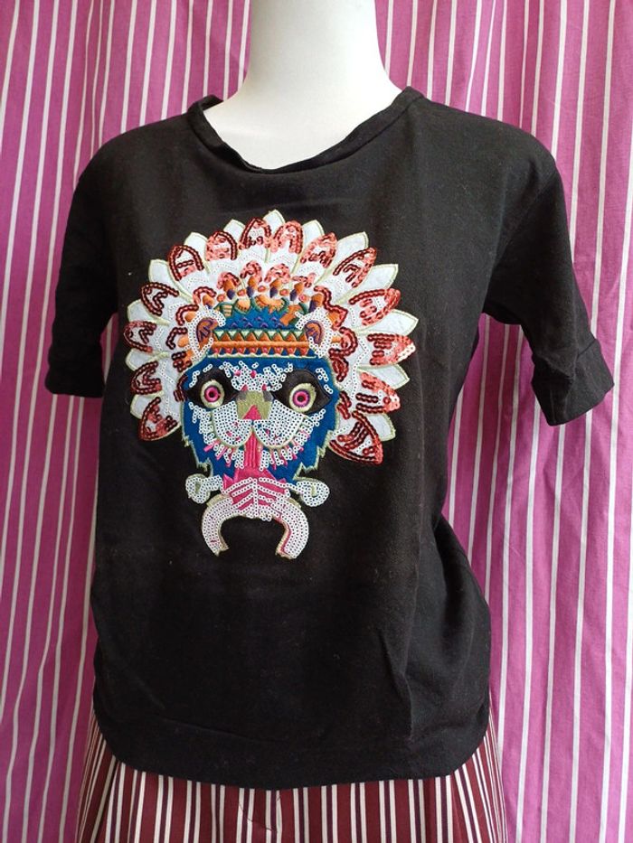 Avec Strass multicolores légèrement brillant devant ,taille différemment Largeurs de poitrine 100cm Longueurs 57cm