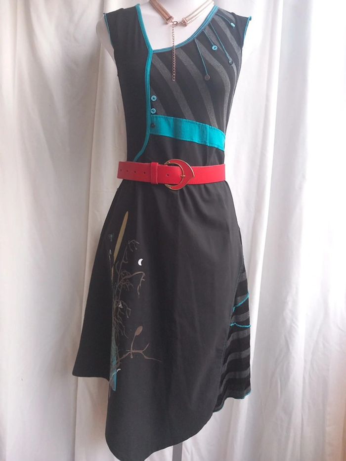Longueur 97cm hors symétrie =1M10 Largueus de poitrine 80cm matière en repos (elle donne car élastique) ceinture non incluse Largeurs de ceinture 78cm matière en repos