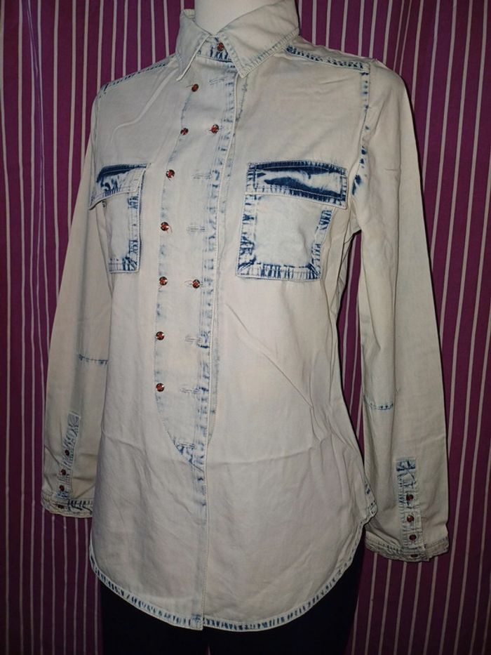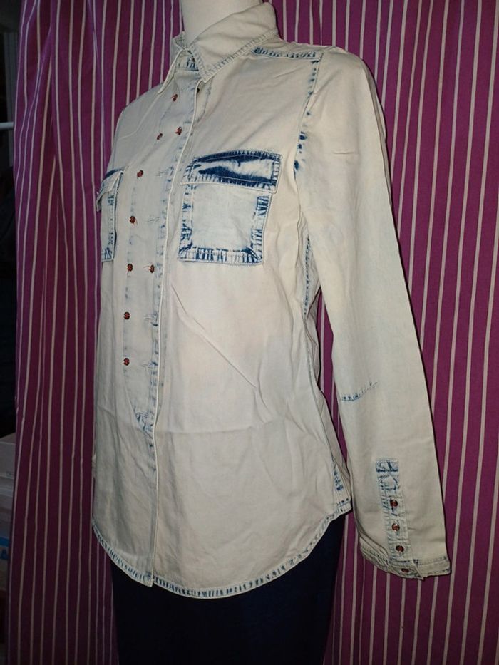 Manches longues en jeans délavé matière souple 100% coton Longues 62cm Largeurs des épaules 36cm Largeurs 48Cm des aisselles à aisselles