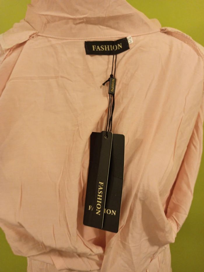 Robe chemise avec deux poches plats,rose soumon, élégant à porter avec des bas et converses - photo numéro 4