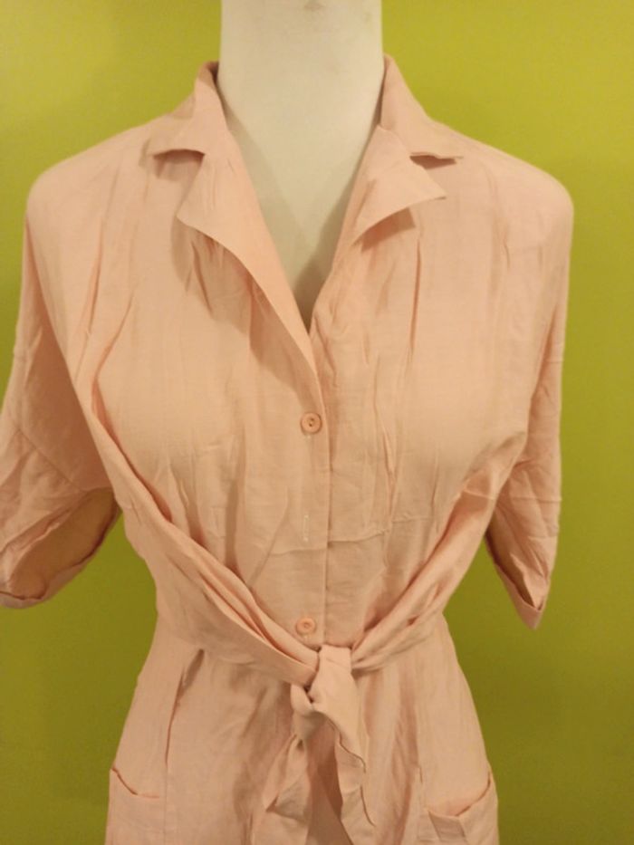 Robe chemise avec deux poches plats,rose soumon, élégant à porter avec des bas et converses - photo numéro 1