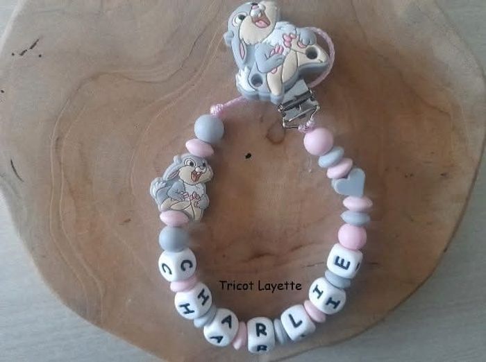 Attache tétine en silicone personnalisé au prénom de votre enfant (envoyez moi un message pour la personnalisation) Possibilité de rajouter un adaptateur en silicone pour les tétines Mam (+0,75€) (me contacter avant l'achat pour que je modifie le prix) Prénom de 3 lettres = réduction de 0,50€ Délais de fabrication et d'envoi : 48h maximum Les couleurs peuvent être changées à votre demande. L'attache tétine ne sera faites qu'une fois le paiement validé, une photo vous sera envoyée avant l'envoi du colis.