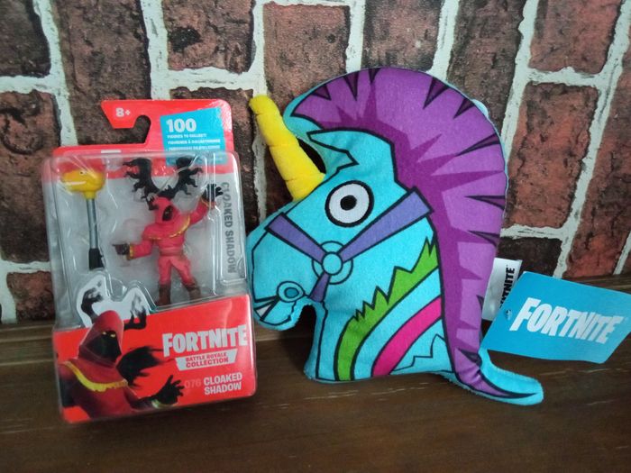 Lot Fortnite comprenant une figurine et une peluche, boîte scellée.