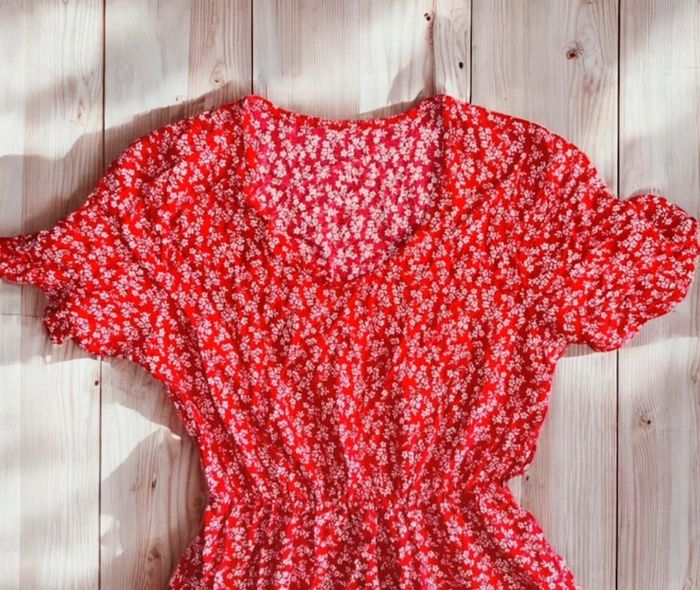 🌸 Jolie robe rouge et blanche fleuris vintage - Taille 38 🌸 - photo numéro 1