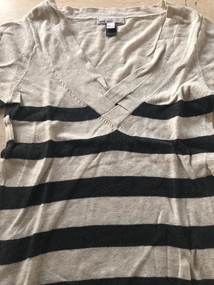 Pull fin beige avec rayures bleues Mango, taille 36, porté quelques fois.