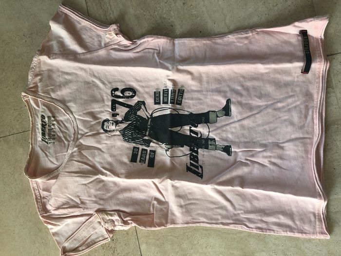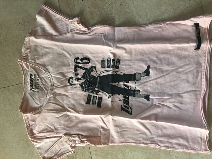 Tee shirt rose avec motifs noirs, taille S, Liberto, très peu porté.