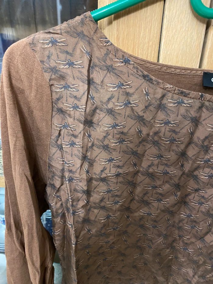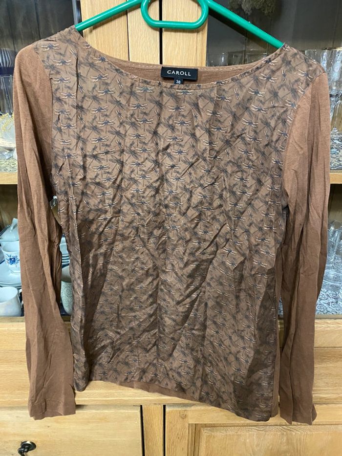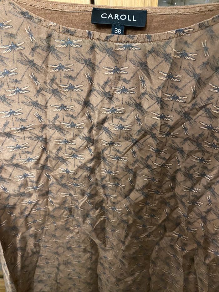 T shirt maron avec motifs libellules, Caroll. Taille 38. Très bon état.