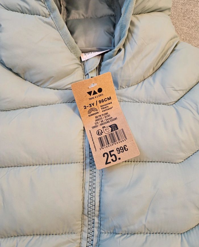 🌈 Doudoune Tape à l'oeil, taille 24/36 mois (plutôt 36 mois: 96cm 😉). Très joli vert d'eau. Pas de tâches, très propre et peu portée mais 2/3 mini accro sur une manche et à la capuche, voir 3e et 4e photo. Sincèrement très peu visibles 👌. C'est uniquement pour cela que j'indique "bon état". Dernière photo à l'achat! 🪴 Pensez à lire ma bio pour plus d'infos! Mon dressing est grand: vêtements de grossesse, puériculture, jeux et jouets etc, et surtout beaucoup de vêtements et chaussures pour fille et garçon. 🍀 Pour voir mes autres annonces de vêtements bébé et petit garçon: #ephemereshadeboy ✨️ Pour voir uniquement la taille 24 mois: #ephemereshadeboy24mois et le 36 mois: #ephemereshadeboy36mois #doudoune #capuche #plumes #jolivert #vertdeau #verteau #tao #tapealoeil #skate #cool