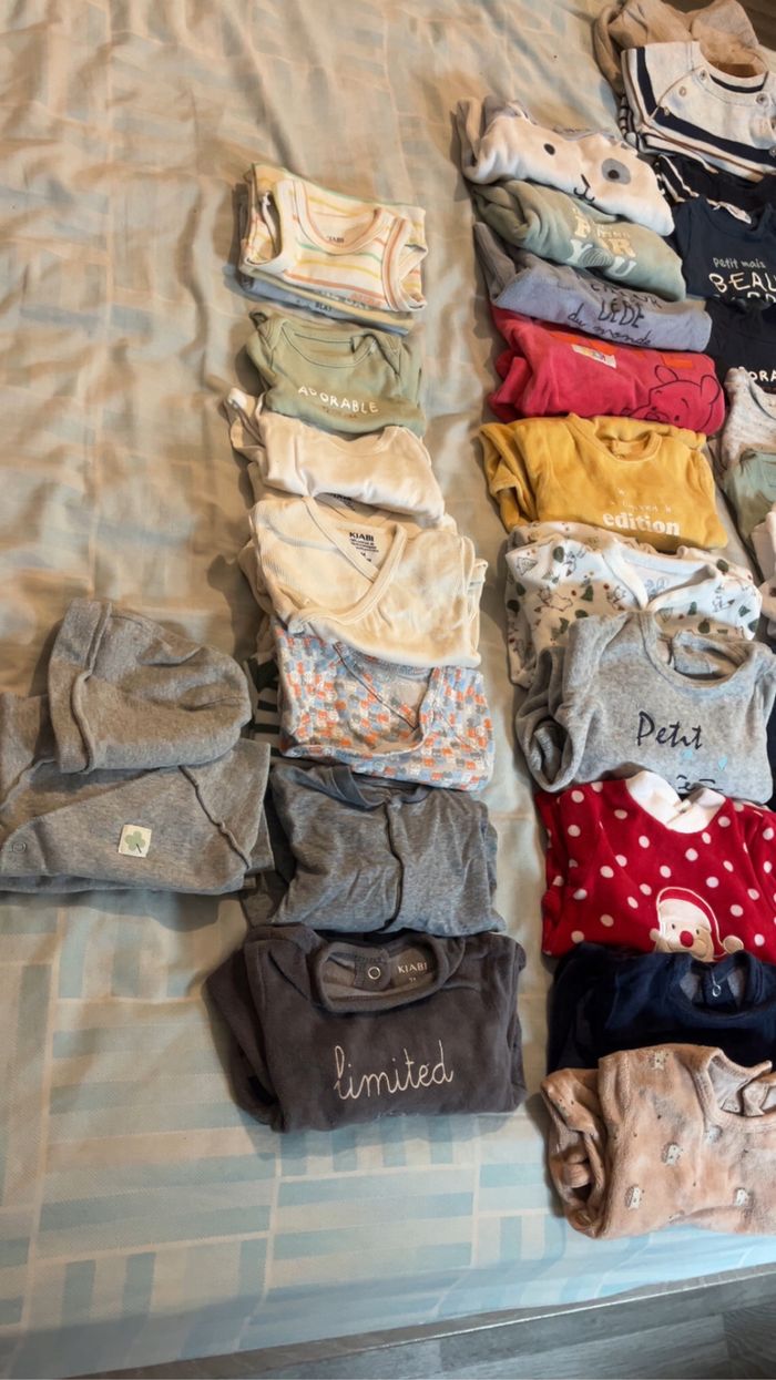 Pyjamas : 15 + 3 Nike Body : 15 Jogging : 10 Jean : 11 Ensemble : 13 Manche longue : 17 + 3 chemise Pull: 3 + 3 veste