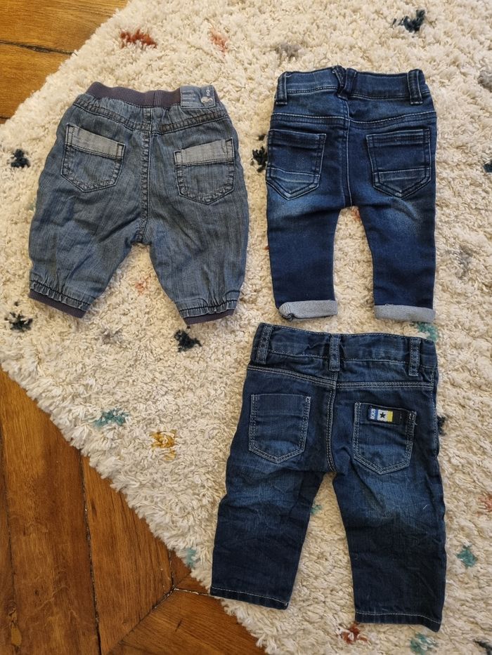 3 jeans bébé 3 mois 1 jean IKKS, 1 jean Lulu Castagnette et 1 jean Obaidi Taille: 3 mois Etat: très bon état Sexe: garçon