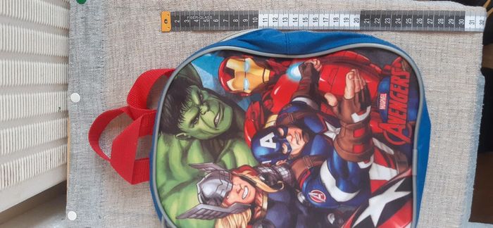 Très bon état très peu servi. Bleu multicolore. Mesures voir photos. Avengers marvel. Tirette de la fermeture est cassé mais on peut quand même l'ouvrir et la fermer. Voir photos. #lauralolo84trèsbonétat #lauralolo84sacs #lauralolo84marvel #lauralolo84avengers