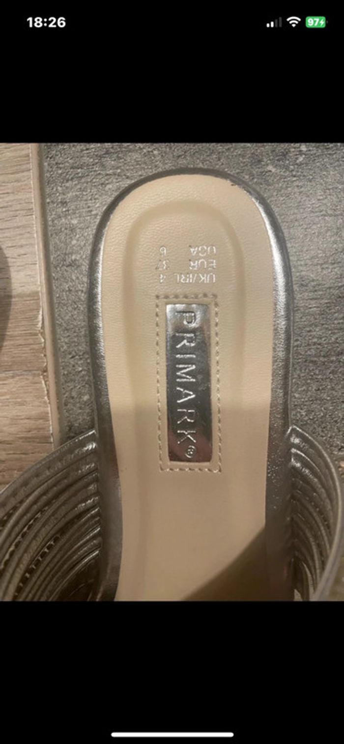 Couleur argenté neuve jamais mise J’ai également les mêmes en doré, mise une seule fois Tong nu pied sandales primark pointure 37