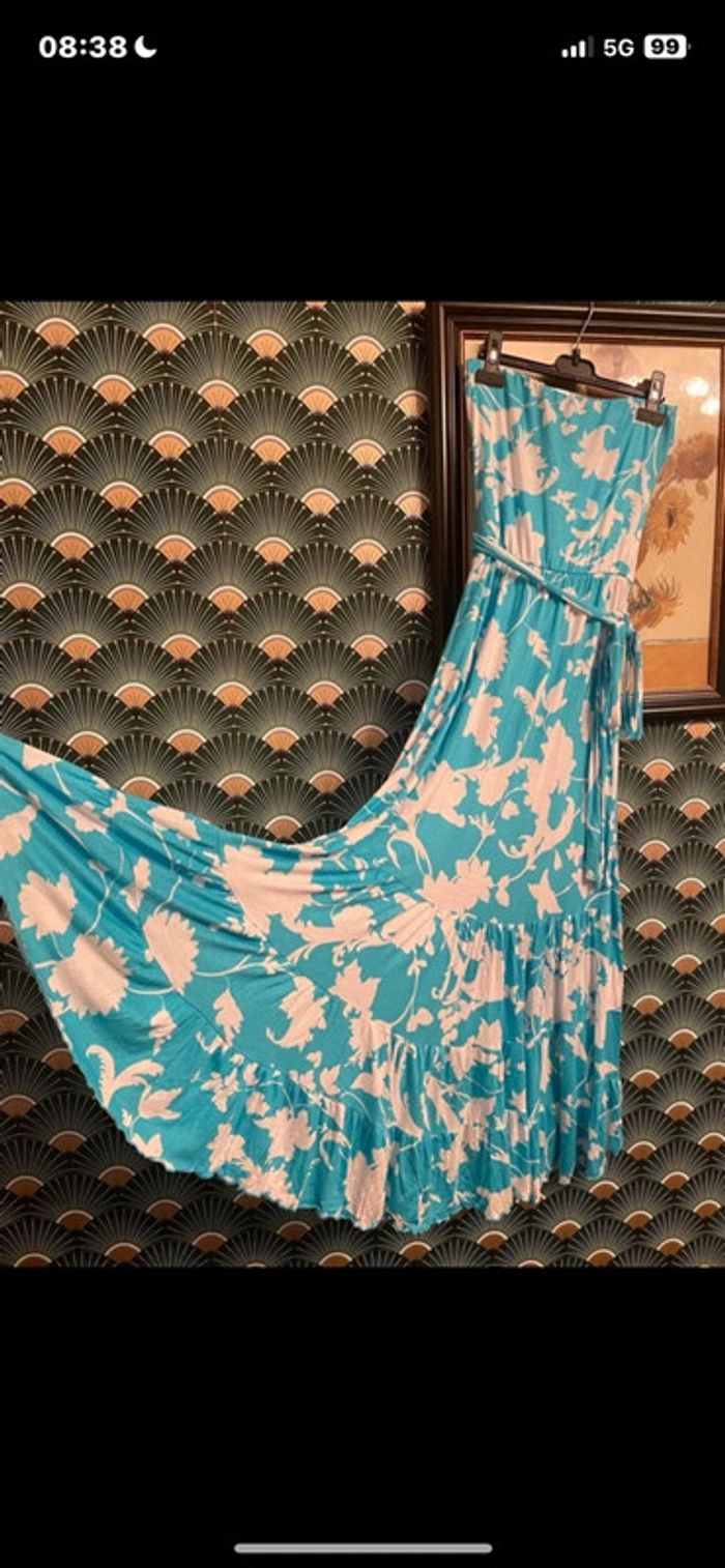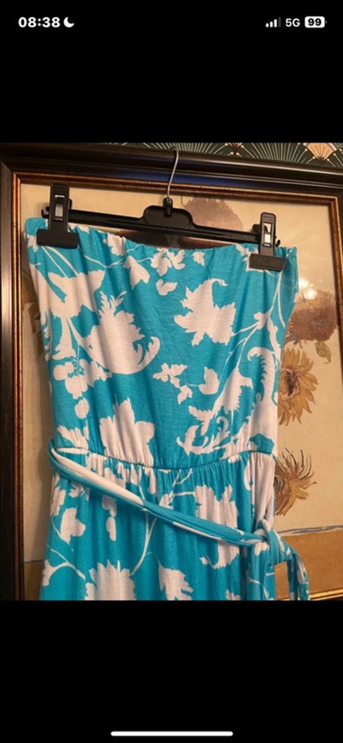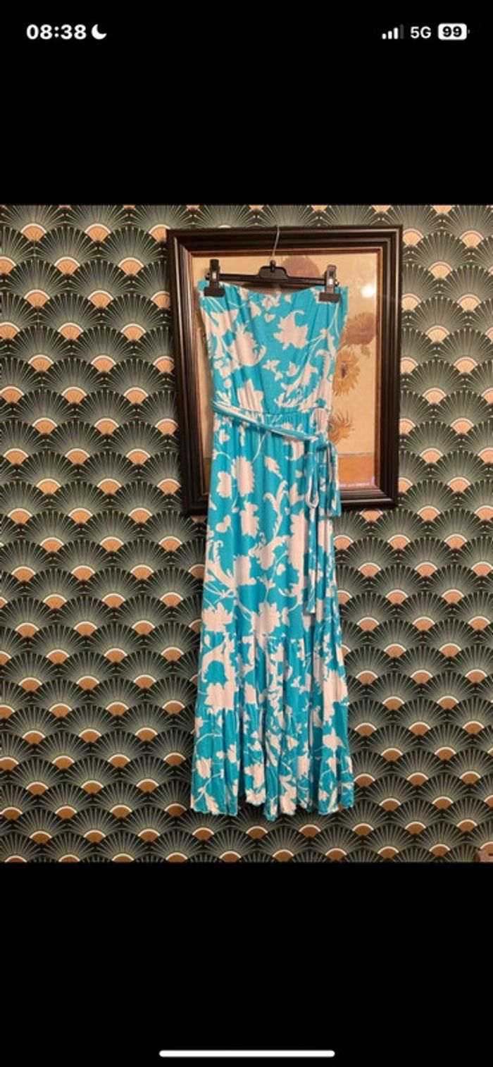 Extensible très jolie portée. Coupe bustier élastique à enfiler Robe maxi bustier zara tropicale bleu turquoise taille M/L