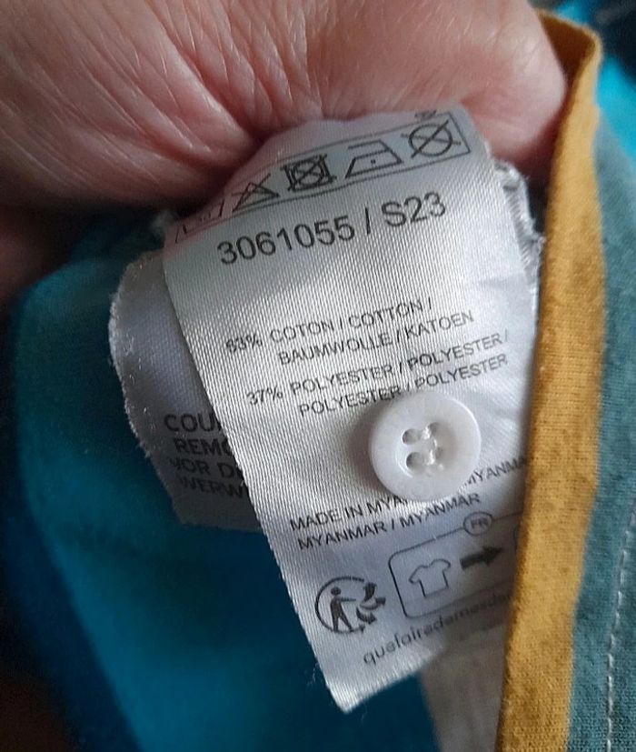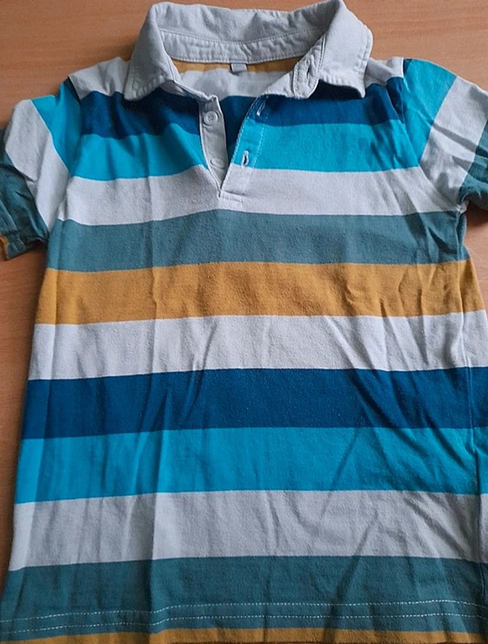 Polo manches courtes rayé bleu/ciel/blanc/vert/ moutarde Tex. #Sally0851vetementenfant #Sally0851e6ans