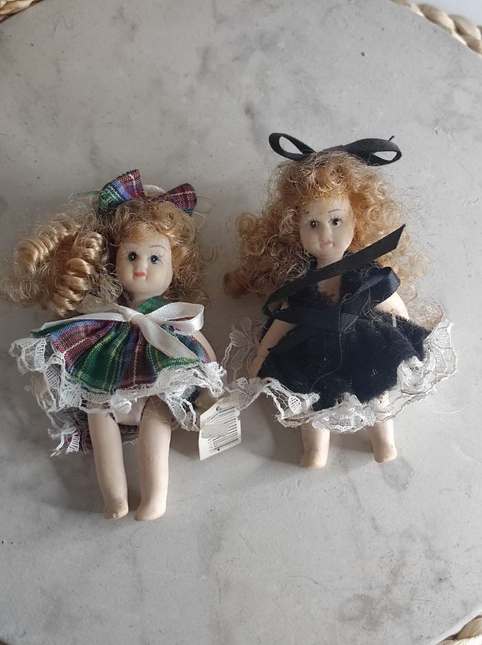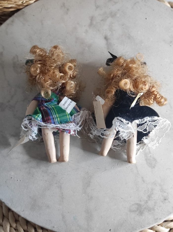 Lot de deux poupées miniature en porcelaine ancienne. Dimensions 10cm Peuvent avoir de la poussière, encore étiqueté