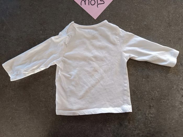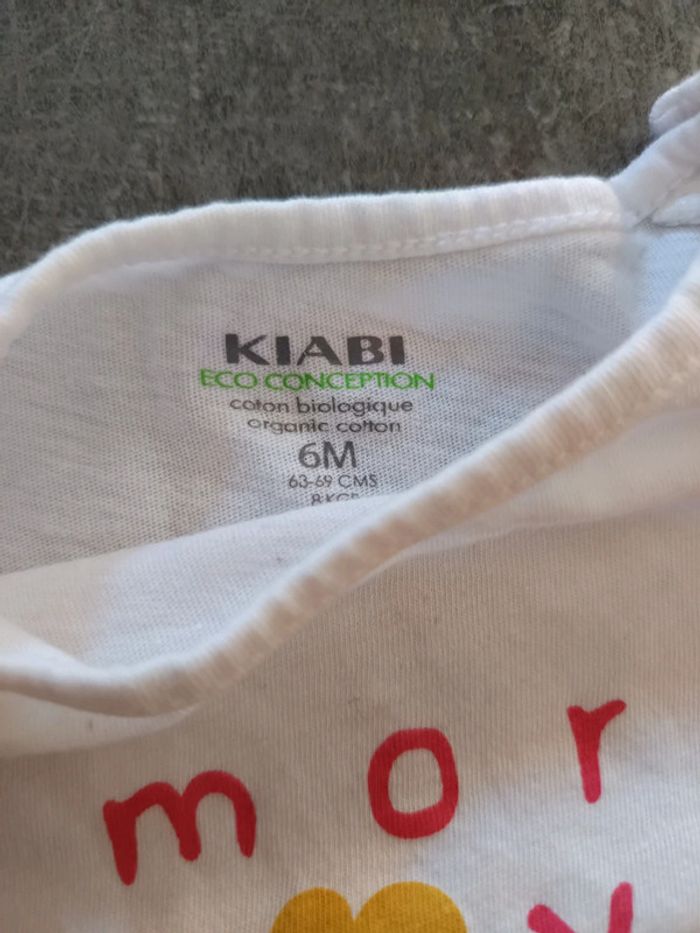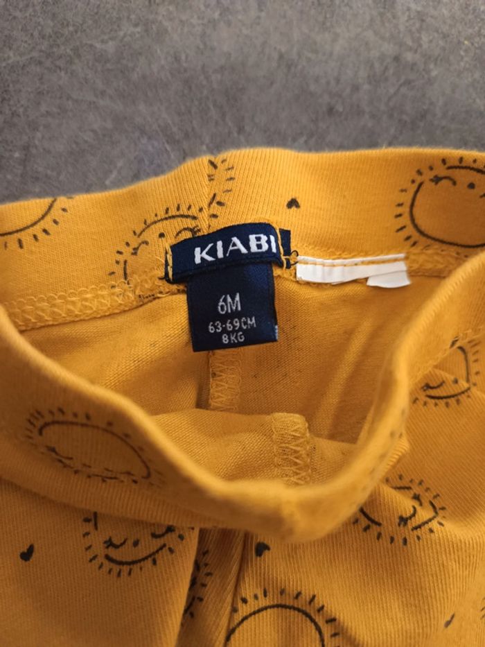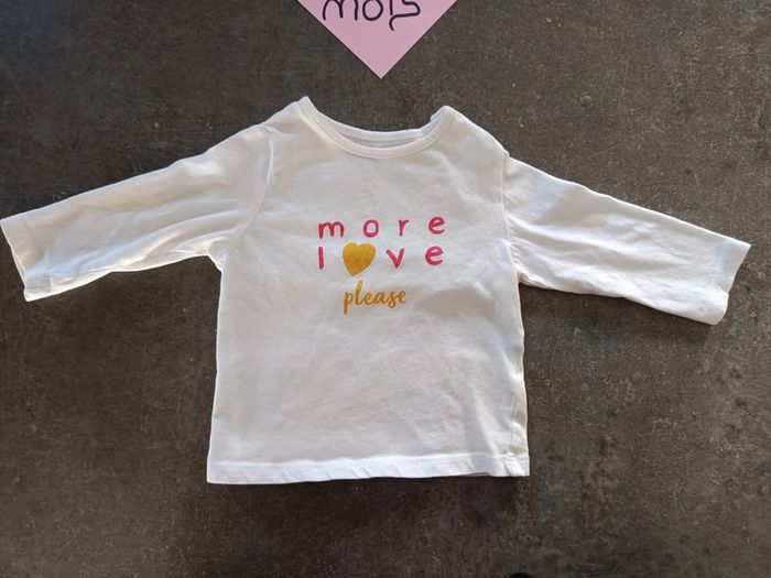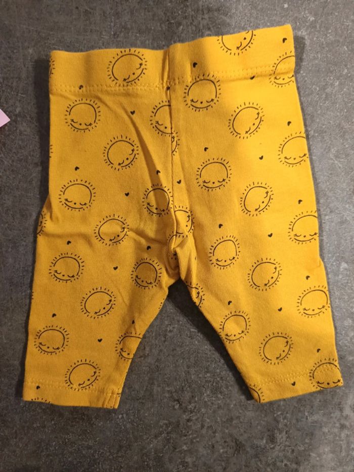 Ensemble 2 pièces : - 1 t-shirt blanc manches longues avec inscription "more love please" en fushia et moutarde ; - 1 legging moutarde motifs soleil Très bon état, Taille 6 mois #vetementbebefille6moisjustine182129