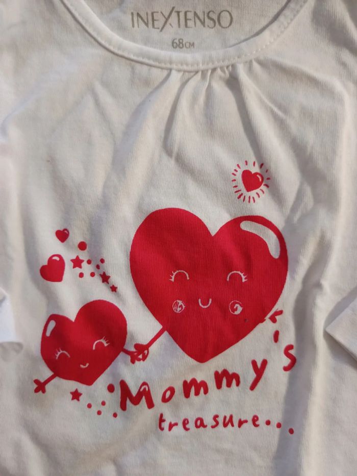 T-shirt blanc manches longues motifs coeurs et inscription "mummy's treasure" NEUF jamais porté ! Taille 6 mois #vetementbebefille6moisjustine182129